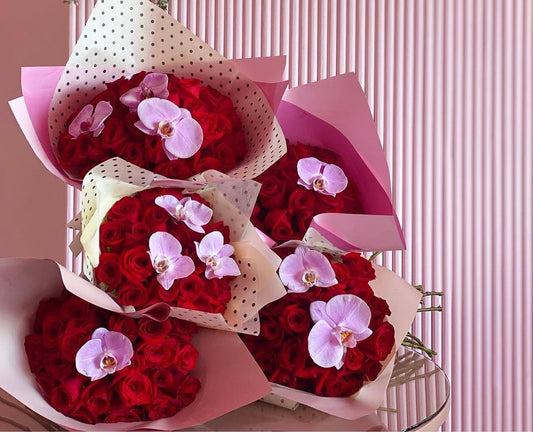 Haz de este San Valentín un momento inolvidable con la elegancia de nuestras rosas rojas premium, entregadas frescas a la puerta de tu ser querido.