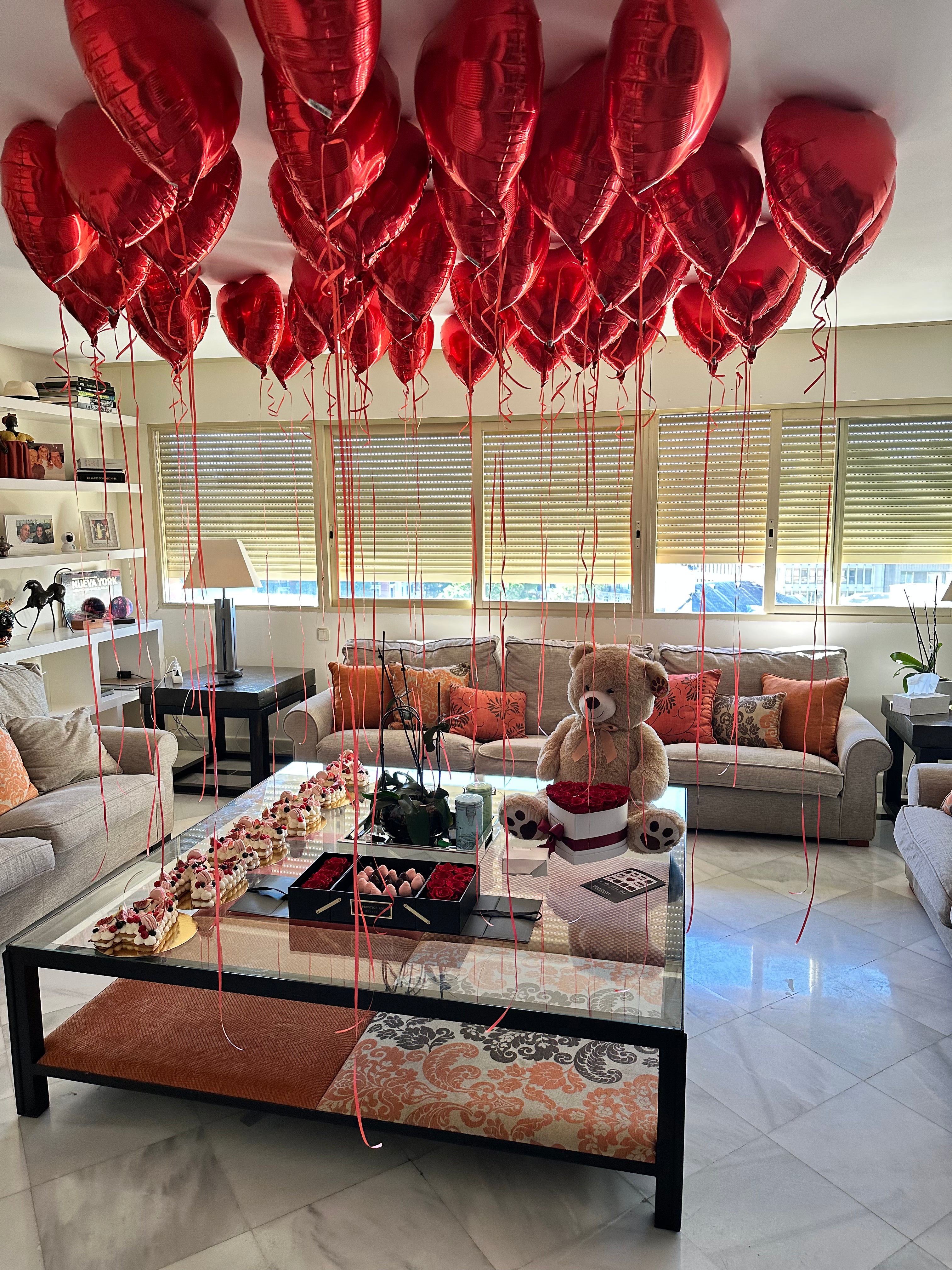 Set exclusivo de 50 Rosas y globos corazón - elegancia y romance