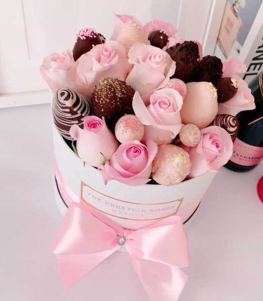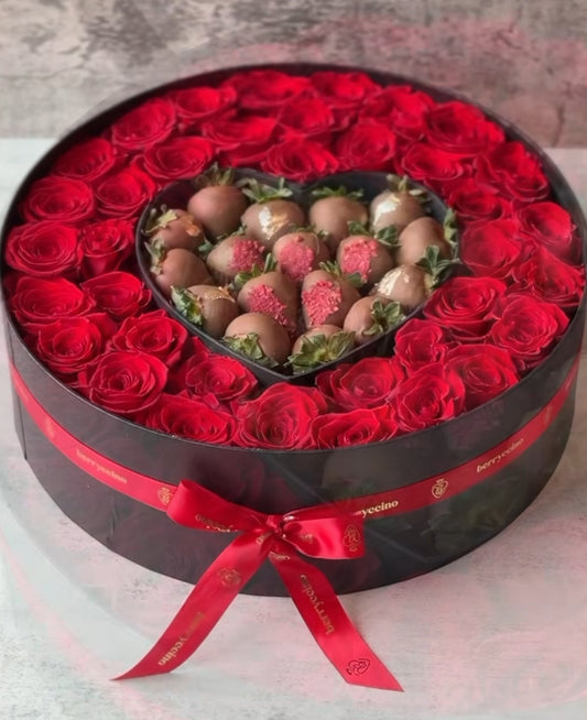 Caja de Rosas y Fresas de Chocolate para Momentos Especiales