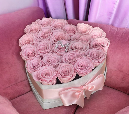 Caja de Rosas Eternas con Iniciales de Diamantes – Lujo Personalizado