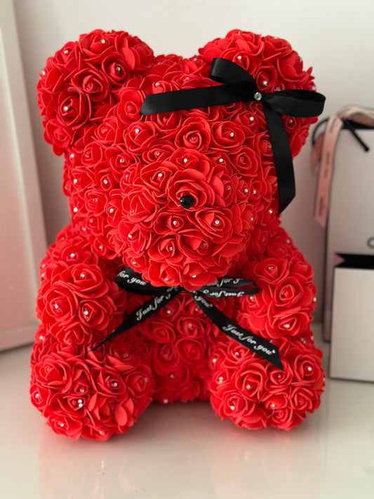 Oso de Rosas Rojo Amor Grande con Cristales de Swarovski - Elegancia y Exclusividad