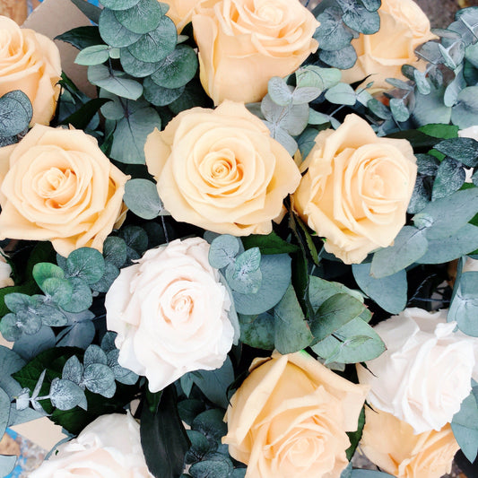 Ramo Lujo de Rosas naturales frescas y Eucalipto