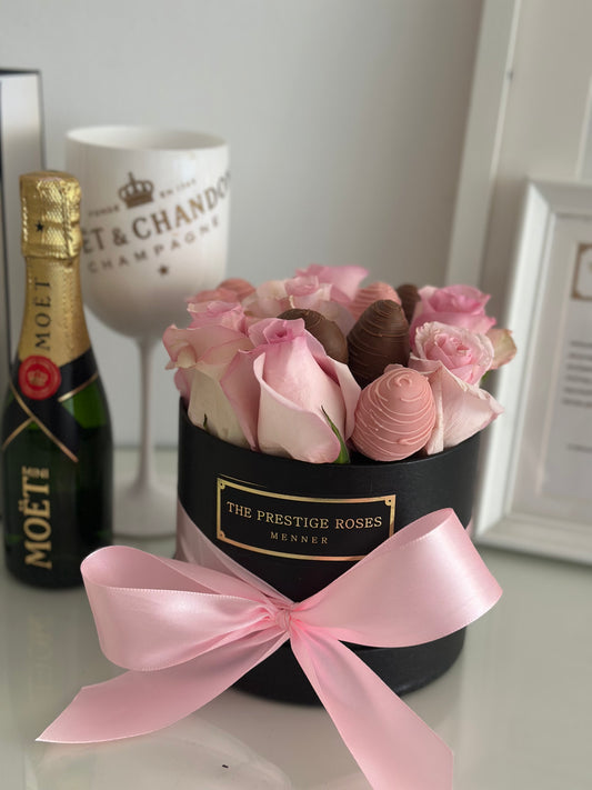 Love Berries Box · Rosas Frescas y Bombones de Fresas en caja brillo