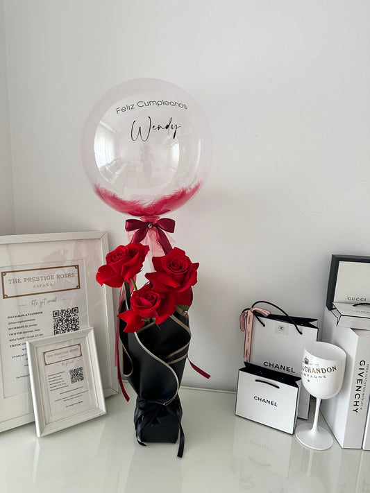 Set de Bouquet de rosas frescas naturales elegante y Globo Corazón