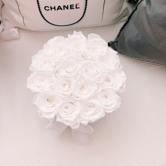 Caja Blanco Mediano de Rosas Eternas Blancas