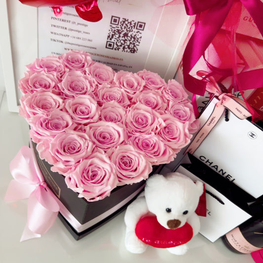 Precio habitual A partir de EUR 155Precio habitualPrecio unitario / porPrecio de oferta A partir de EUR 155Set de Caja de Rosas Preservadas, Peluche, fresas y Globo